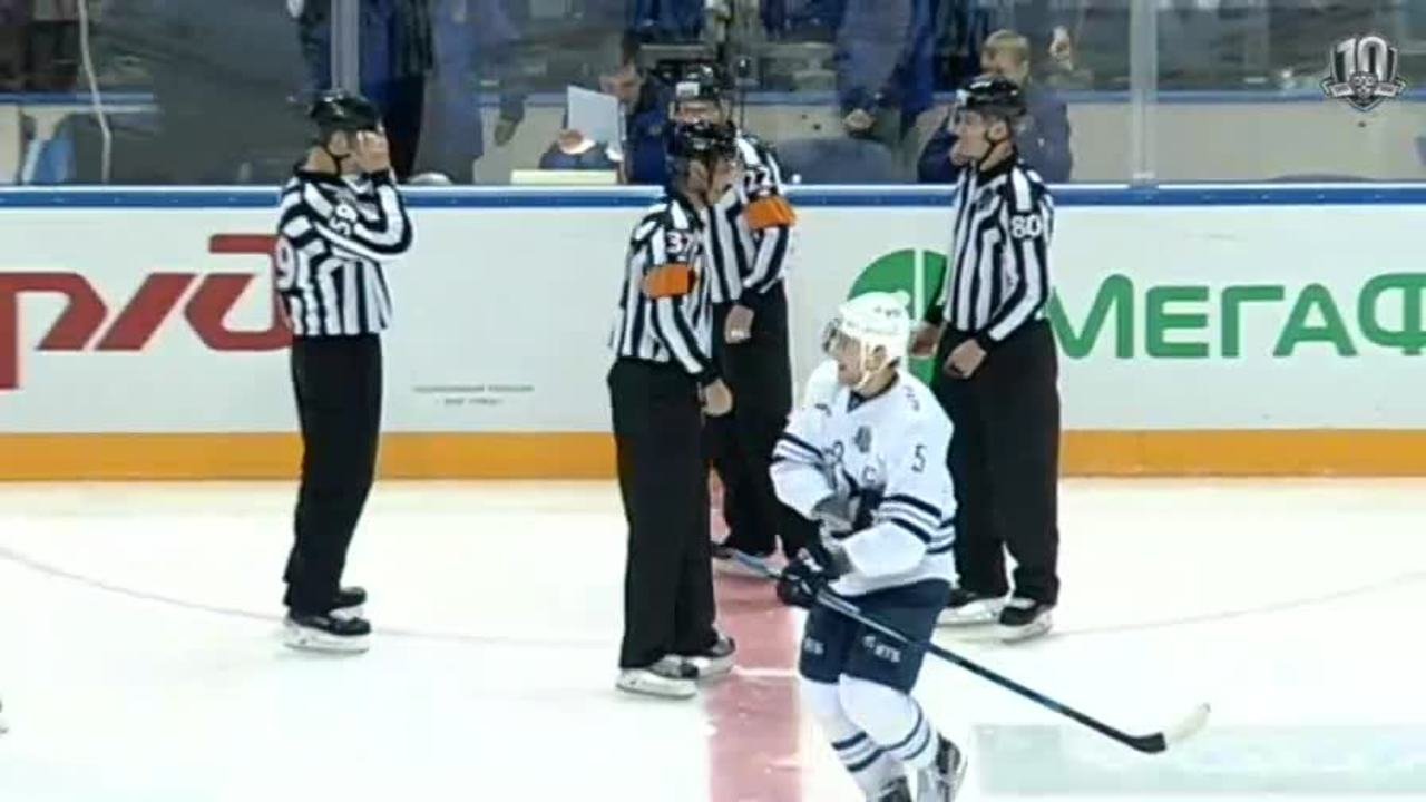 Удаление. Алексей Терещенко (Динамо) удалён на 2 минуты за опасную игру высоко поднятой клюшкой